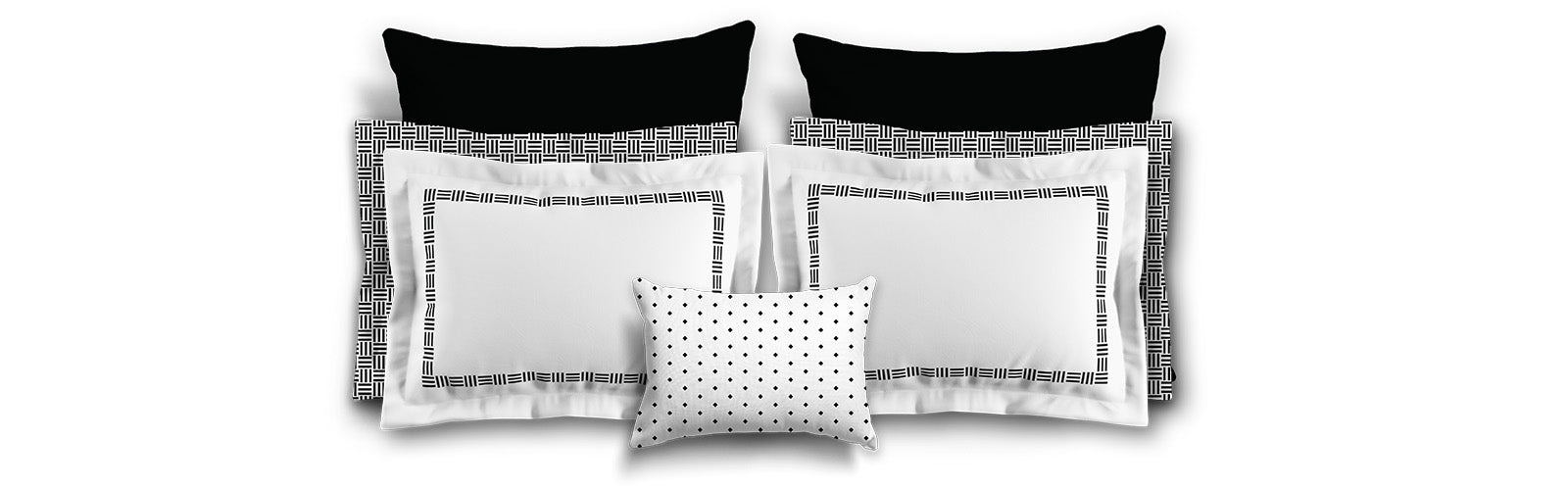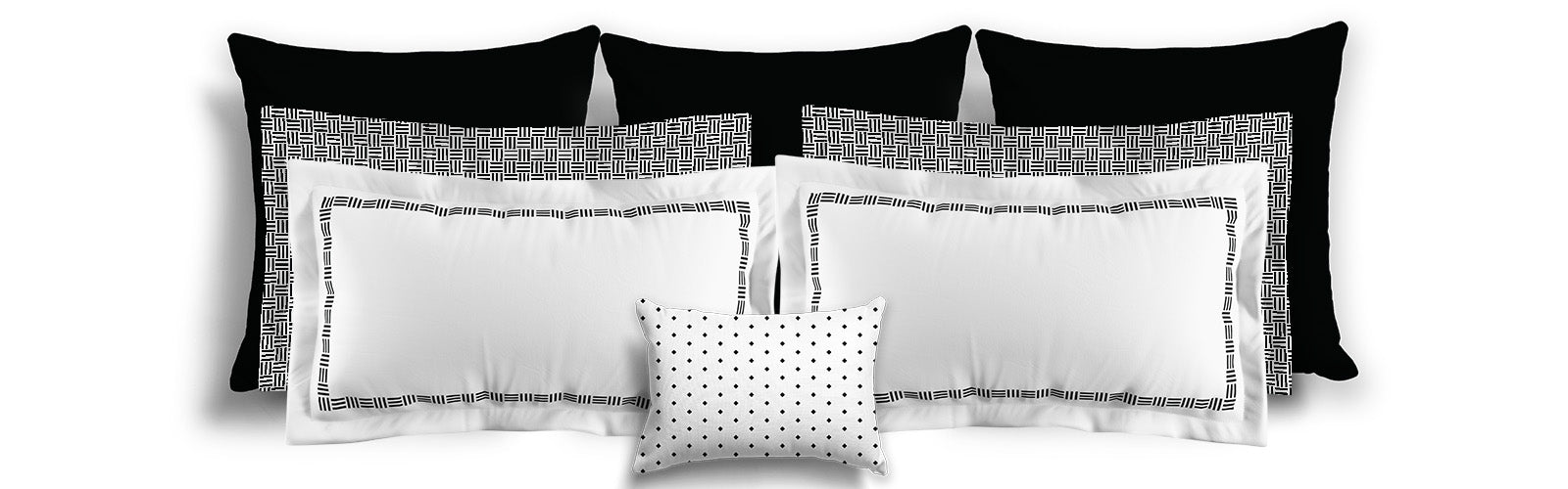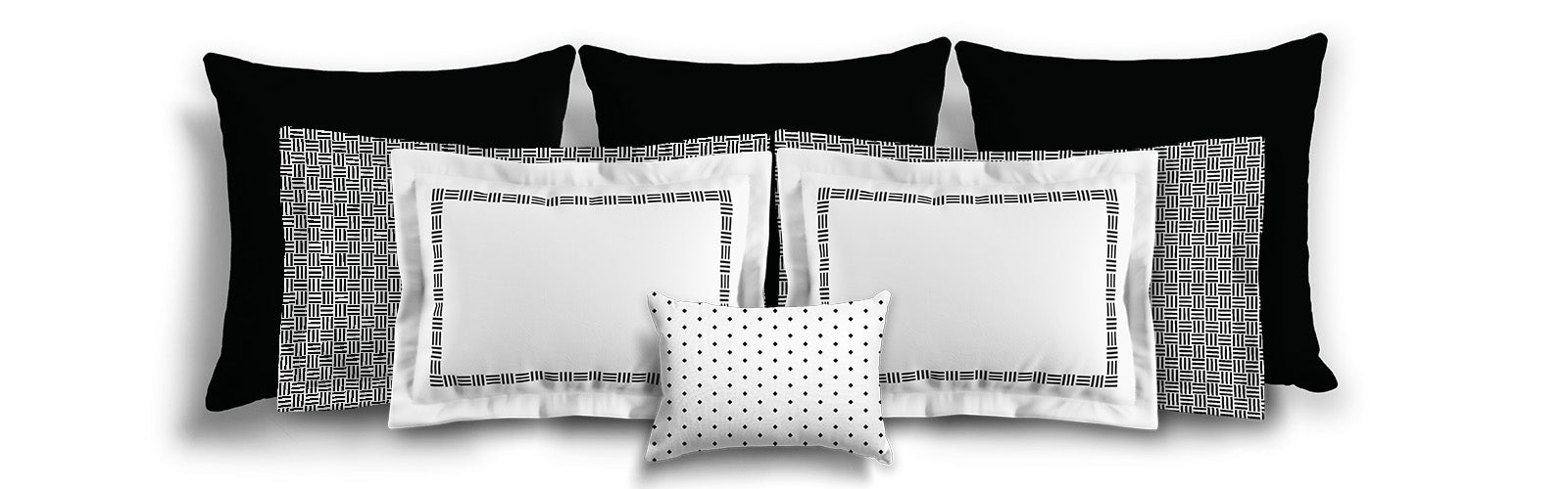 White Microfiber Pillow Sham with Flange, Black Single Weave Motif Print, White Reverse Side | MFSF-1010-142