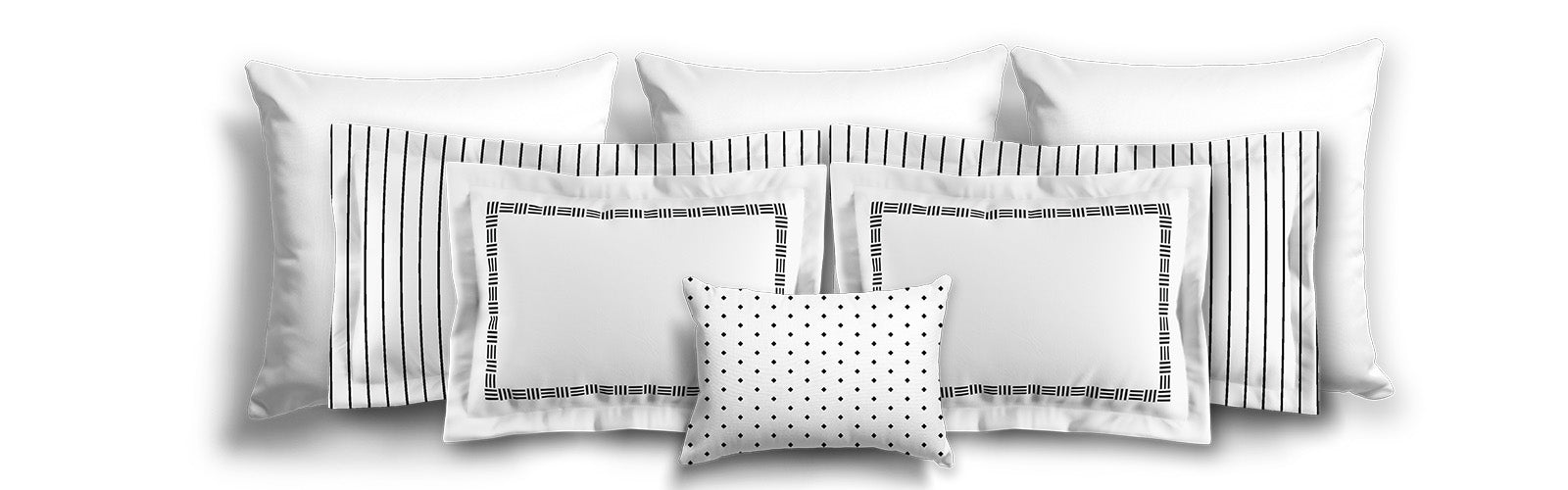 White Microfiber Sham with Flange, Black Bars on Front, White Reverse Side | MFSF-1010-051