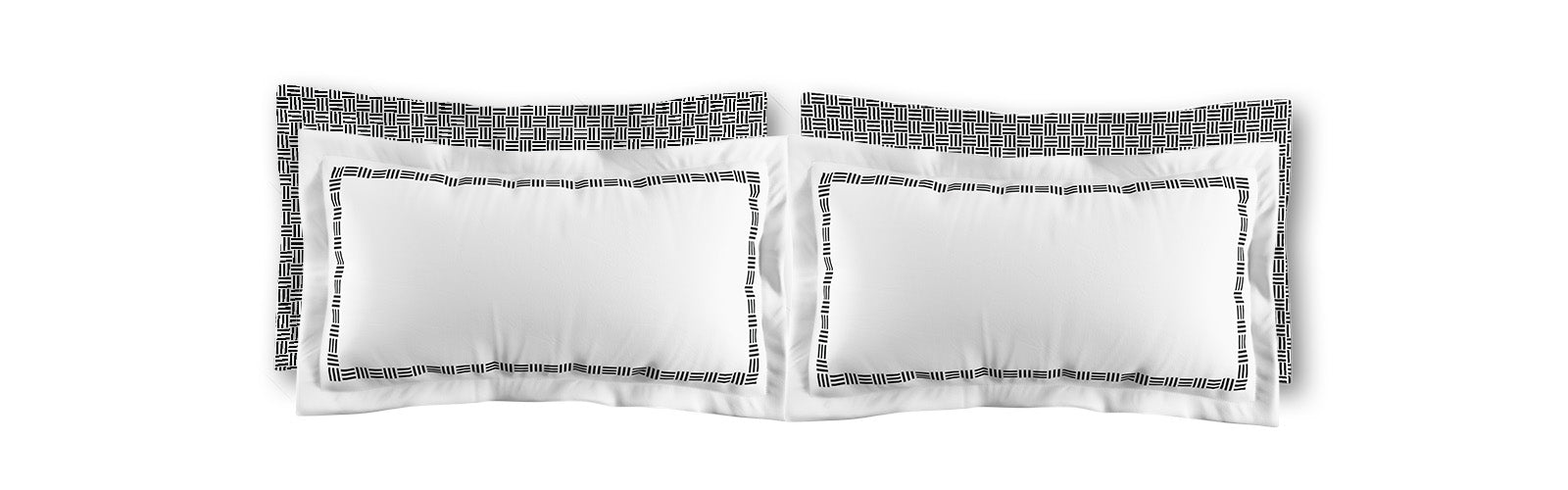 White Microfiber Pillow Sham with Flange, Black Single Weave Motif Print, Classic Border, White Reverse Side | MFSF-1010-141