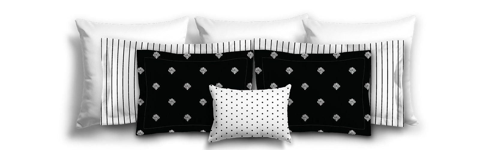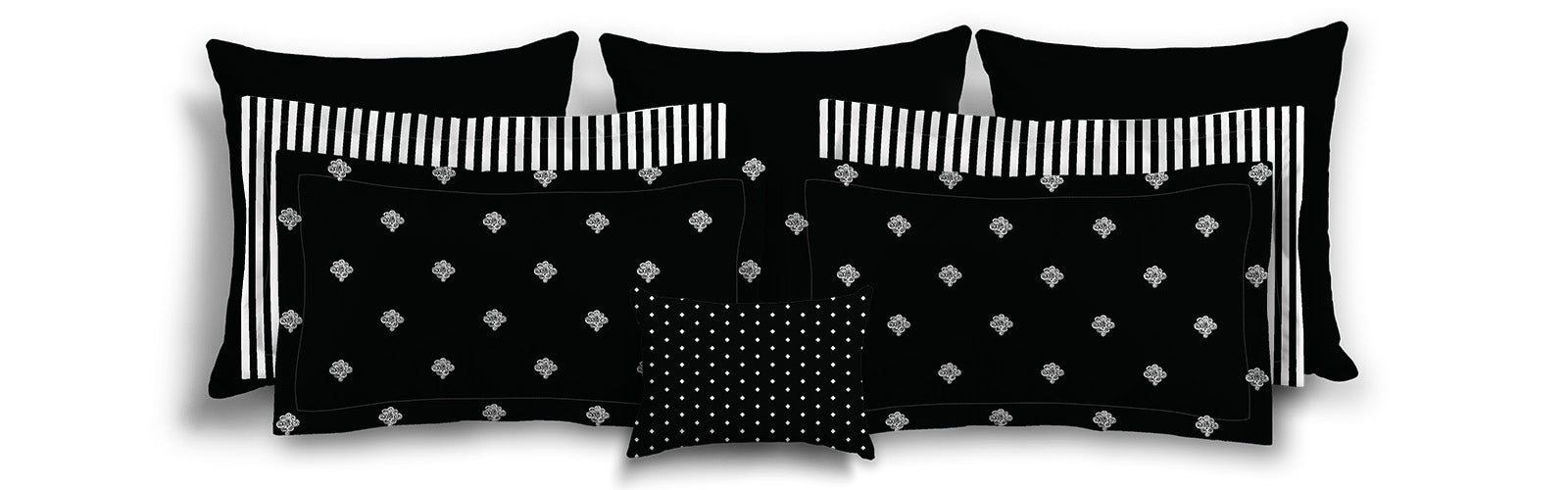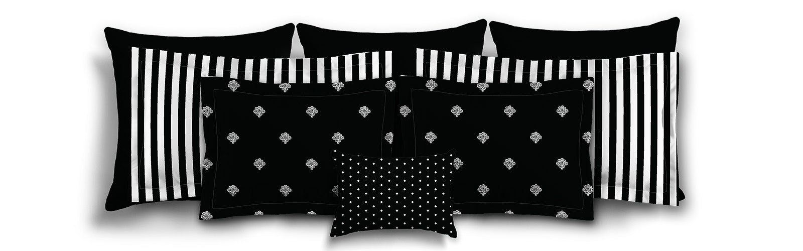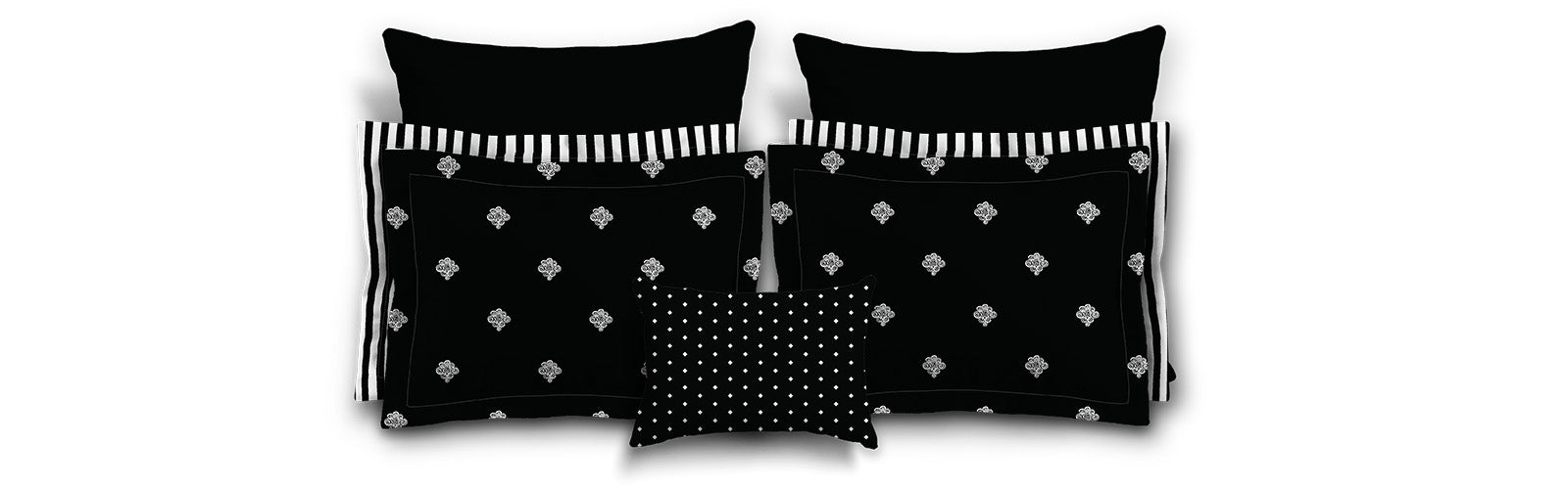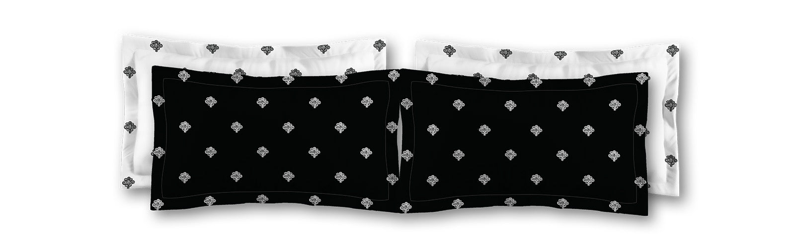 Black Microfiber Pillow Sham with Flange, White Hand-painted Swizzle Motif Print, White Reverse Side | MFSF-1010-172
