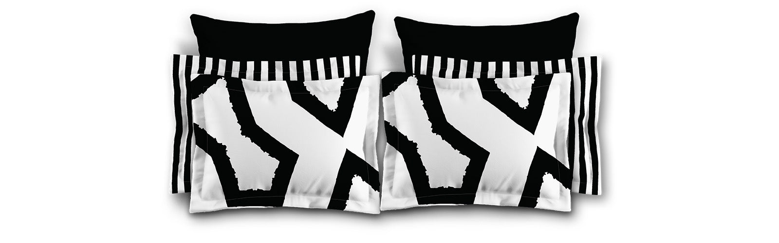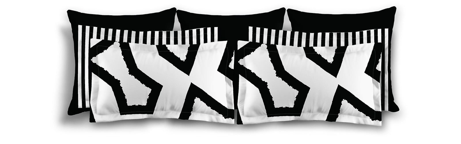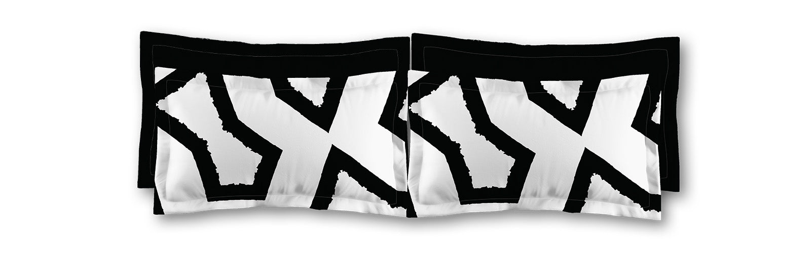 White Microfiber Sham with Flange, Bold Black Graphic on Front, White Reverse Side | MFSF-1010-391