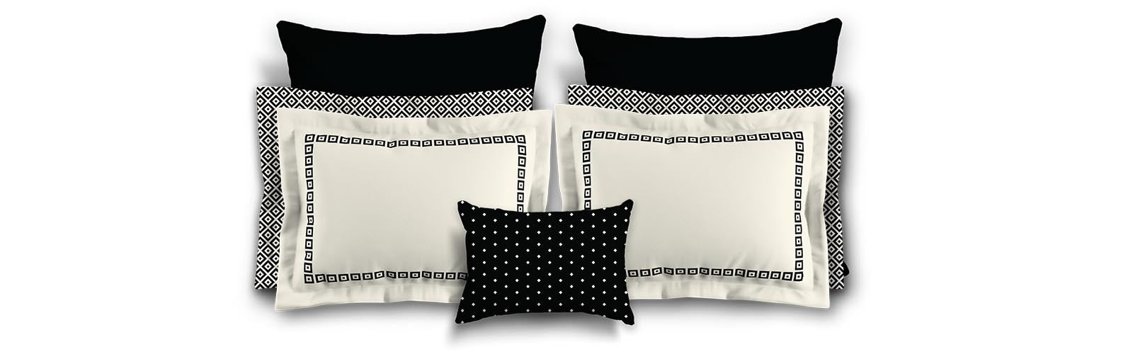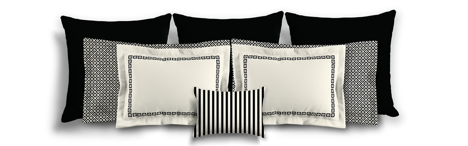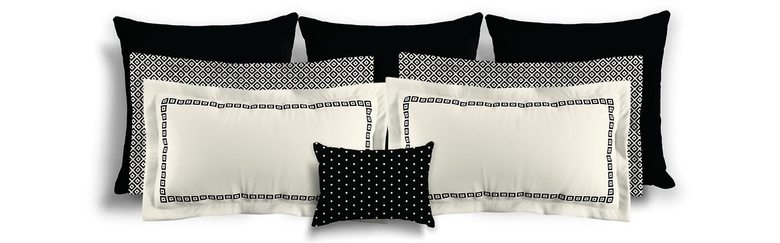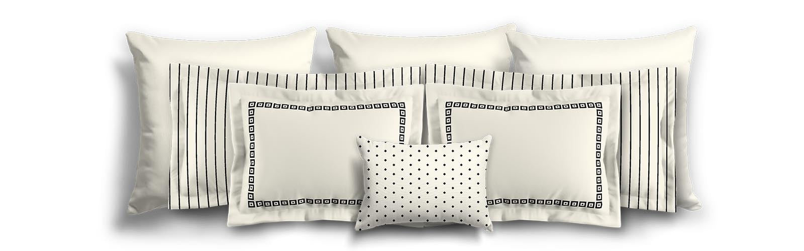 Pale Cream Microfiber Sham with Flange, Black Bars on Front, White Reverse Side | MFSF-1013-051