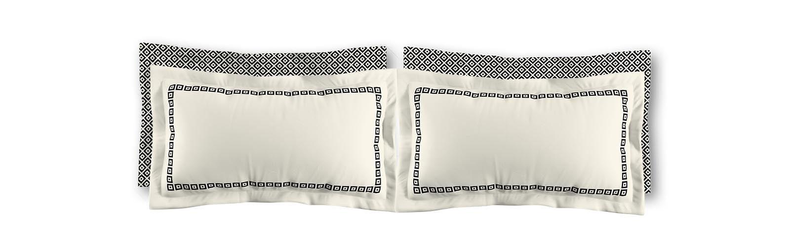 Pale Cream Microfiber Pillow Sham with Flange, Black Repeating Square Motif Print, Classic Border, White Reverse Side | MFSF-1013-121
