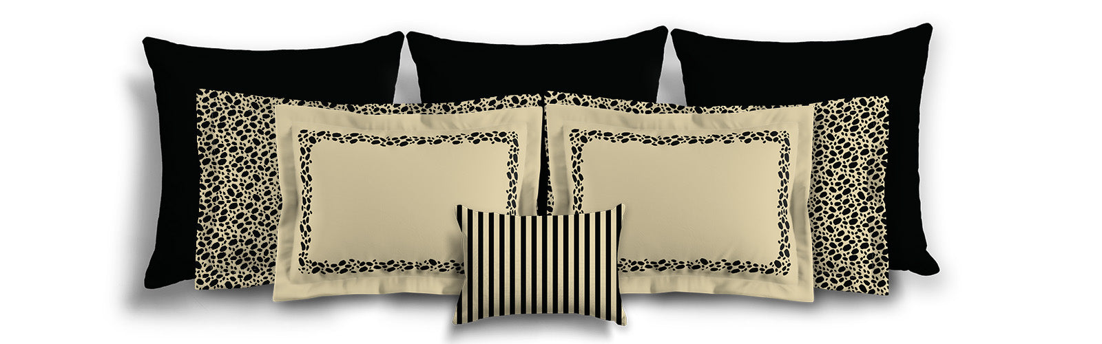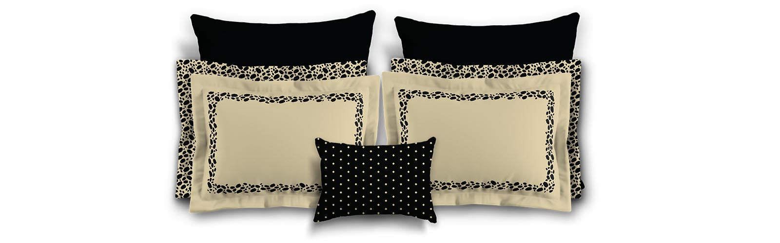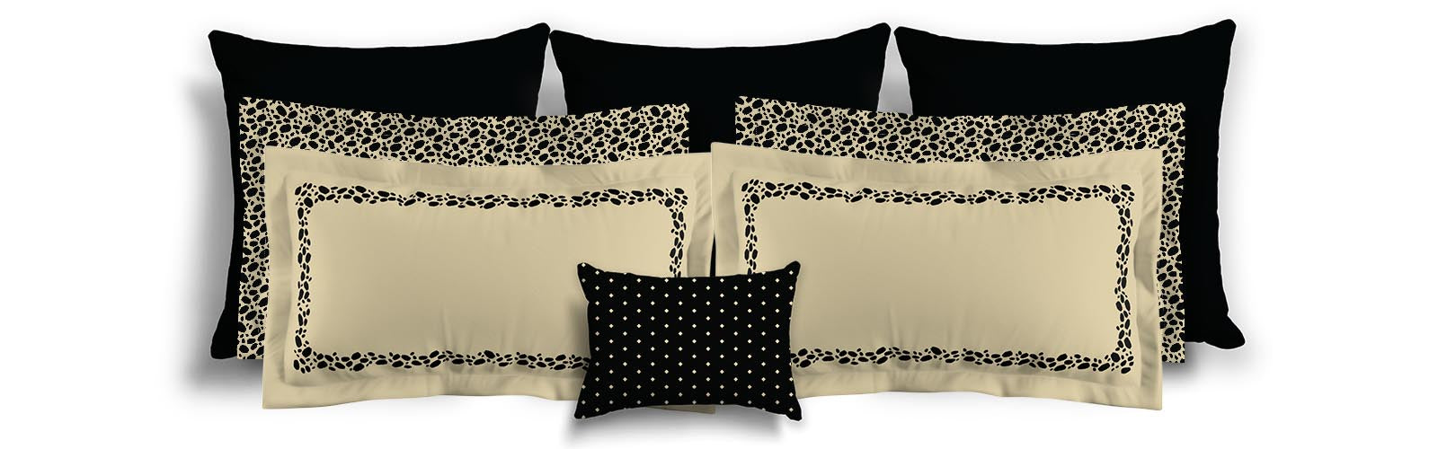 Tan Microfiber Pillow Sham with Flange, Black Hand-painted Dab Motif Print, Classic Border, Tan Reverse Side | MFSF-1014-091