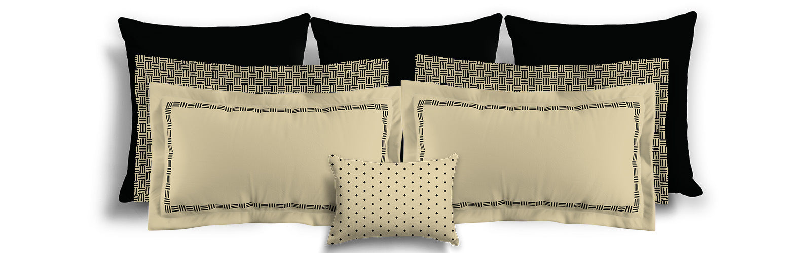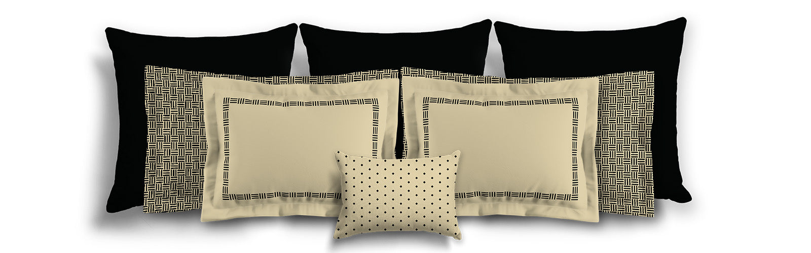 Tan Microfiber Pillow Sham with Flange, Black Single Weave Motif Print, Tan Reverse Side | MFSF-1014-142
