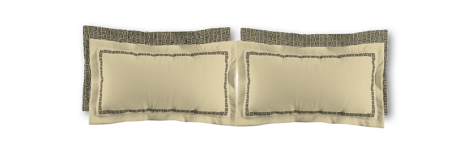 Tan Microfiber Pillow Sham with Flange, Black Single Weave Motif Print, Classic Border, Tan Reverse Side | MFSF-1014-141
