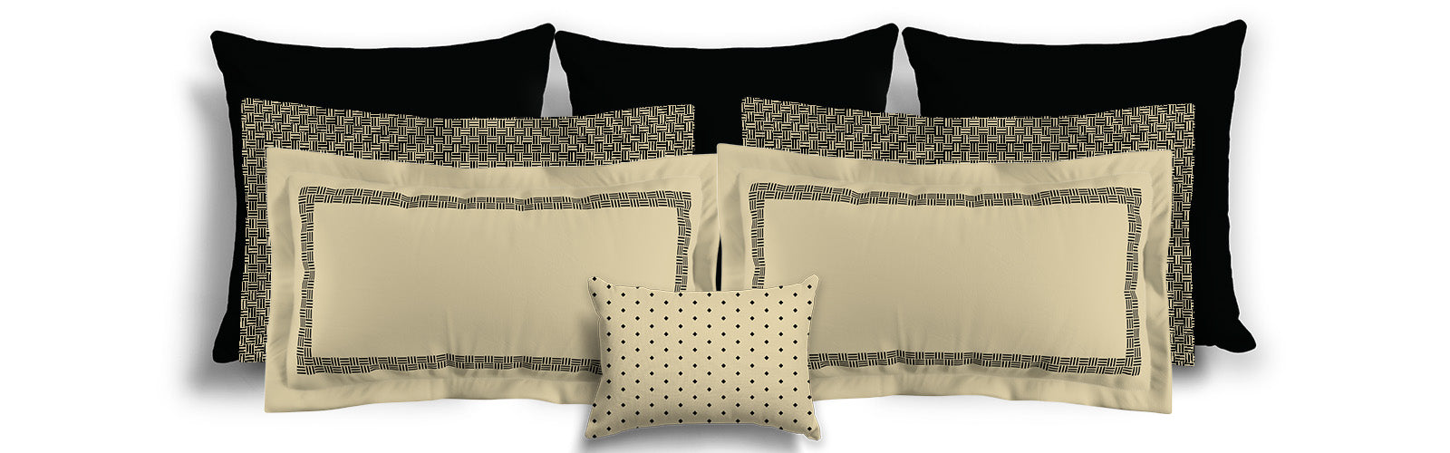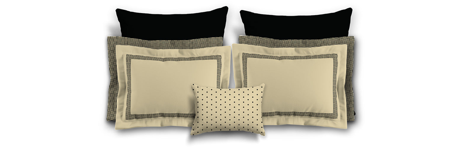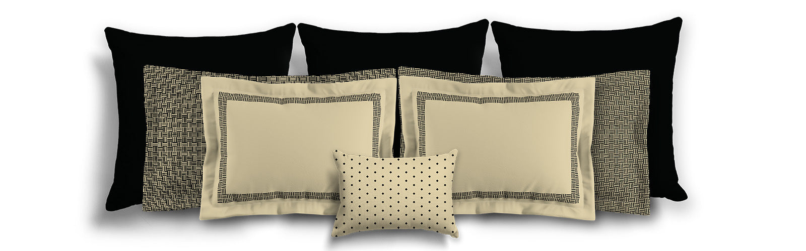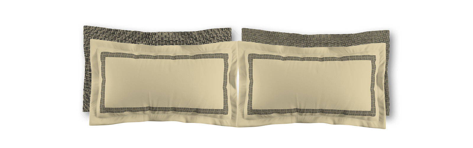 Tan Microfiber Pillow Sham with Flange, Black Double Weave Motif Print, Tan Reverse Side | MFSF-1014-144