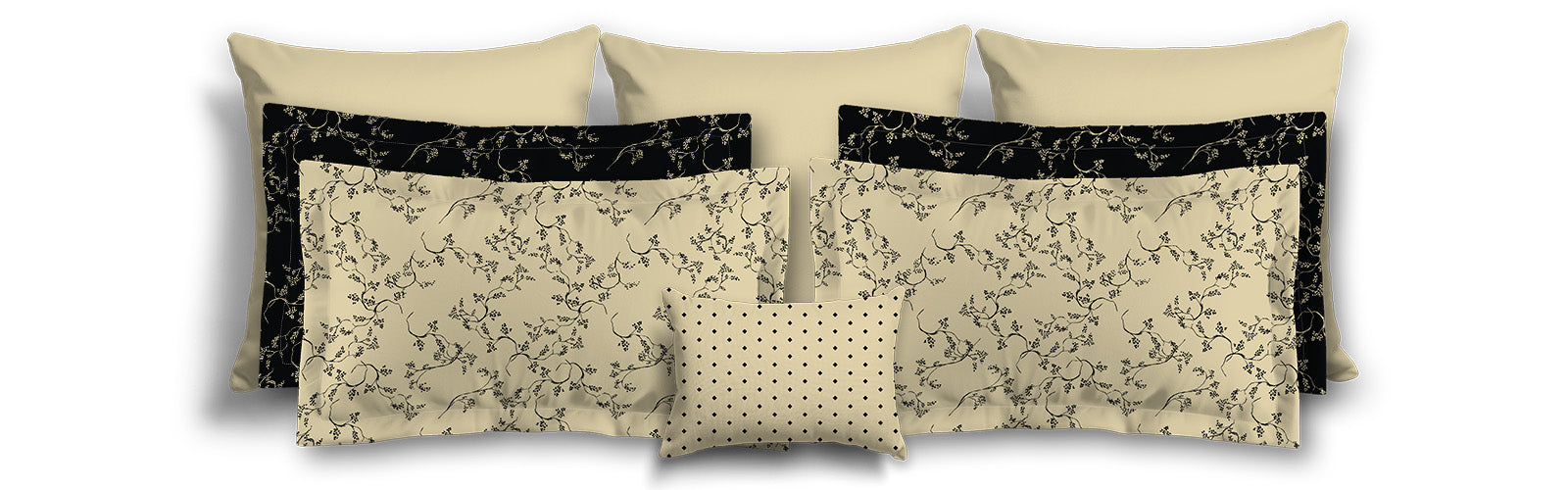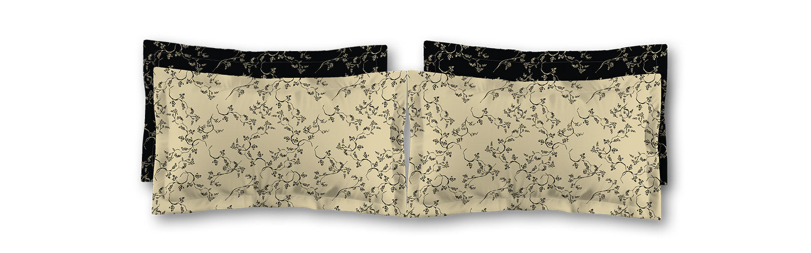 Black Microfiber Pillow Sham with Flange, Tan Hand-painted Vine Print, Tan Reverse Side | MFSF-1014-182