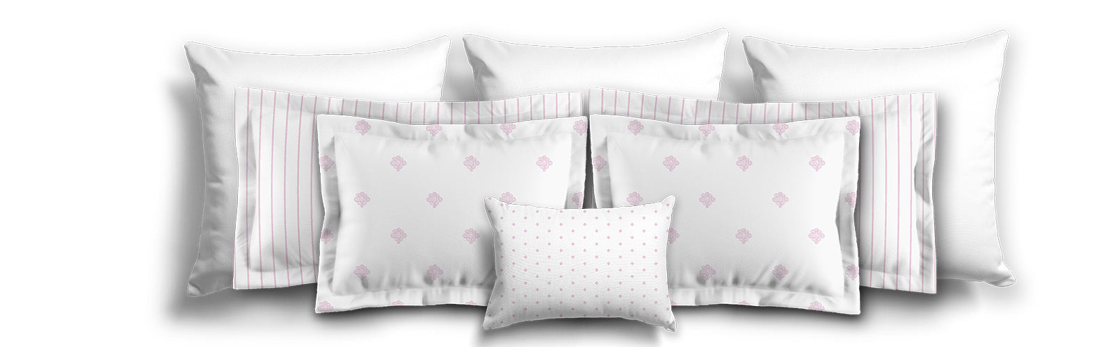 White Microfiber Sham with Flange, Pink Stripes on Front, White Reverse Side | MFSF-1081-151