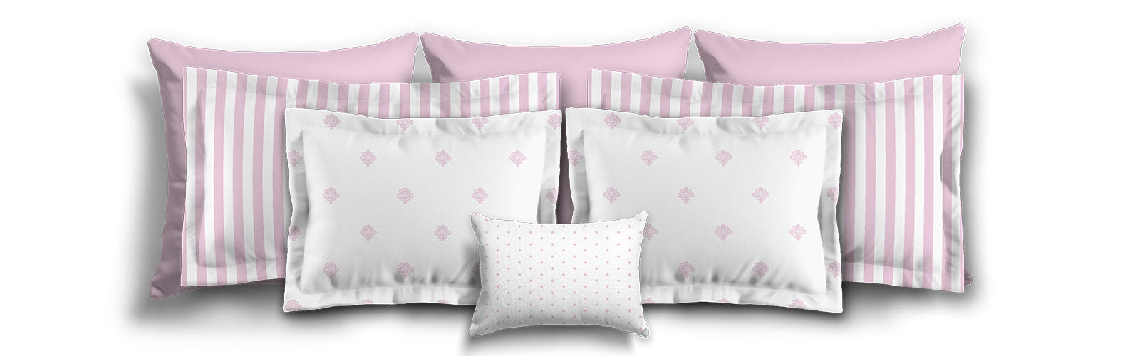 Pink Microfiber Sham with Flange, White Stripes on Front, White Reverse Side | MFSF-1081-152