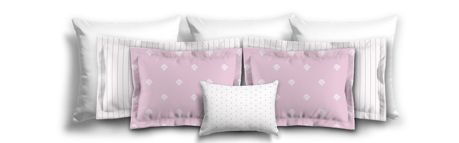 White Microfiber Sham with Flange, Pink Stripes on Front, White Reverse Side | MFSF-1081-151