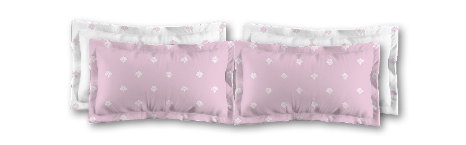 Pink Microfiber Pillow Sham with Flange, White Hand-painted Swizzle Motif Print, White Reverse Side | MFSF-1081-172