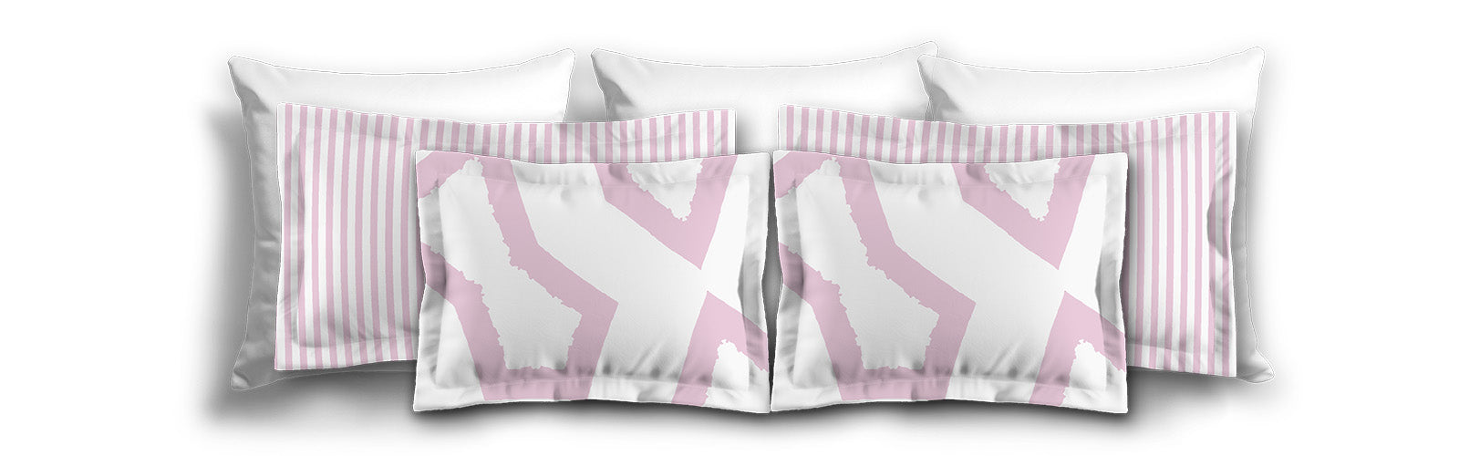White Microfiber Sham with Flange, Pink Bars on Front, White Reverse Side | MFSF-1081-051