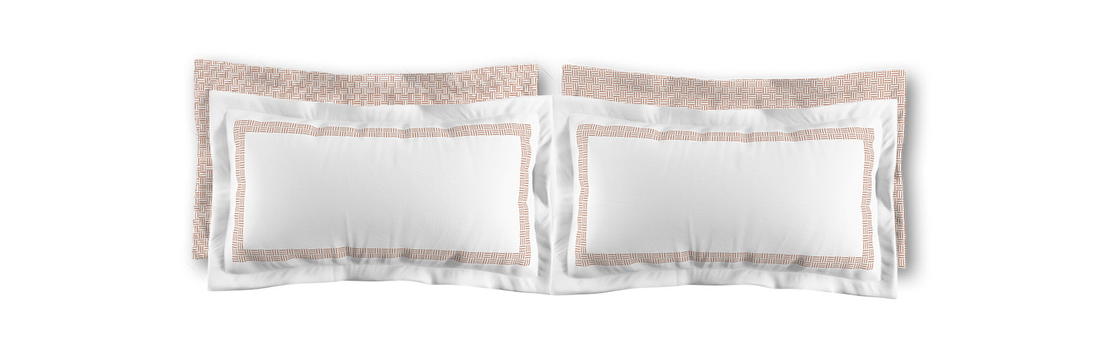 White Microfiber Pillow Sham with Flange, Salmon Double Weave Motif Print, Classic Border, White Reverse Side | MFSF-1139-143