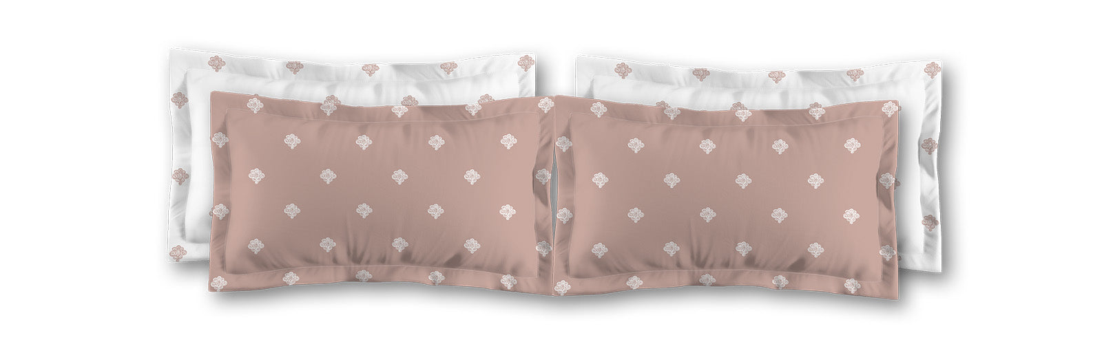 Salmon Microfiber Pillow Sham with Flange, White Hand-painted Swizzle Motif Print, White Reverse Side | MFSF-1139-172