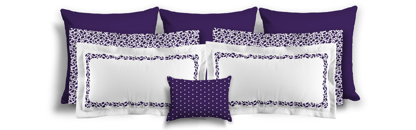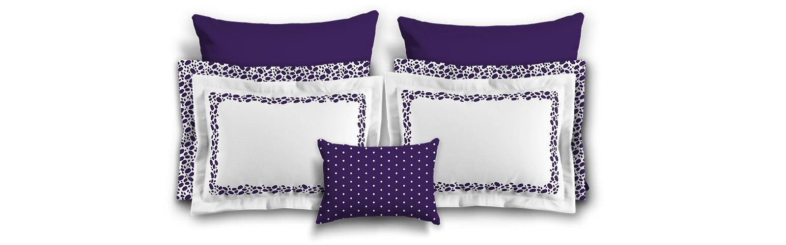 White Microfiber Pillow Sham with Flange, Purple Hand-painted Dab Motif Print, White Reverse Side | MFSF-1143-092