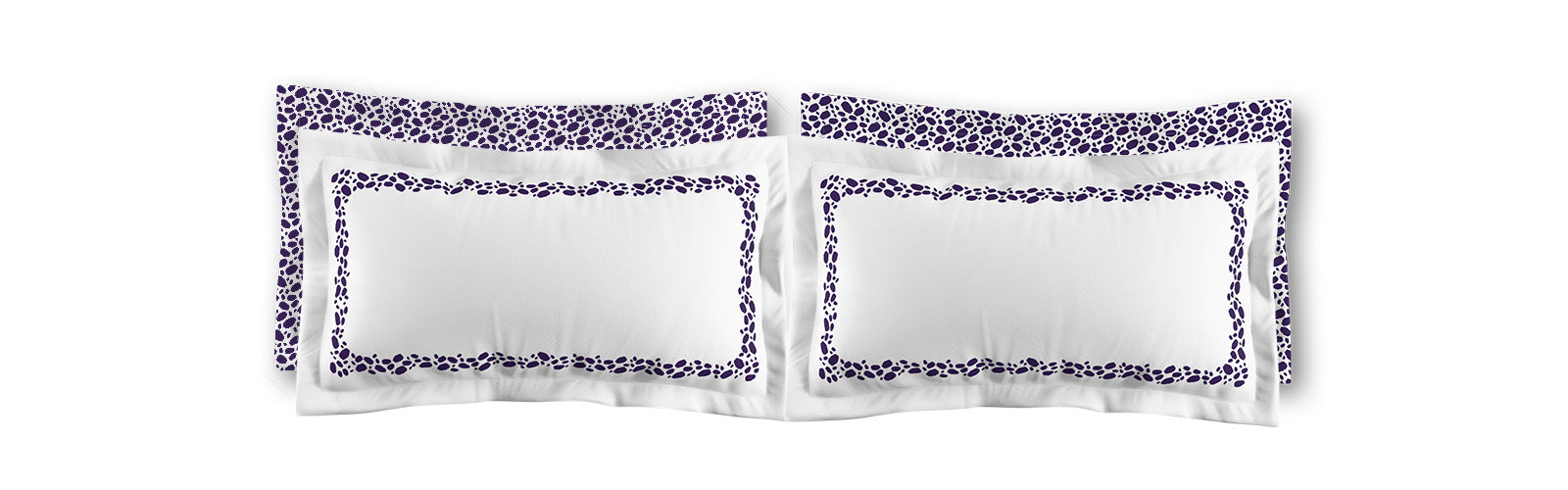 White Microfiber Pillow Sham with Flange, Purple Hand-painted Dab Motif Print, Classic Border, White Reverse Side | MFSF-1143-091