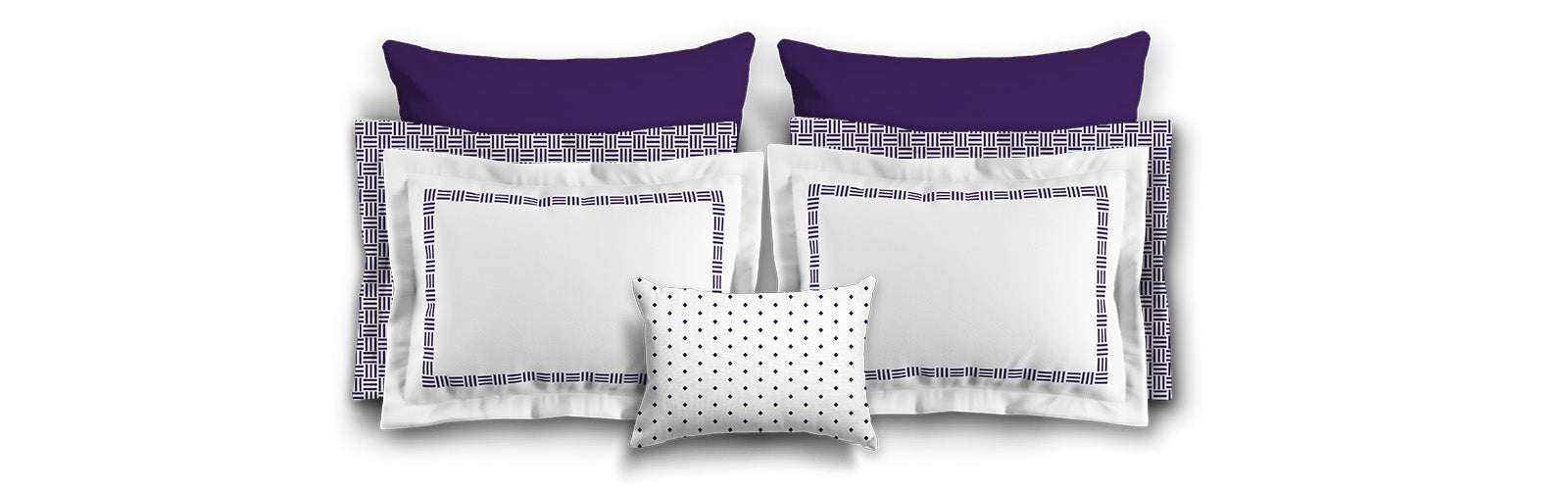 White Microfiber Sham with Flange, Purple Bars on Front, White Reverse Side | MFSF-1143-051