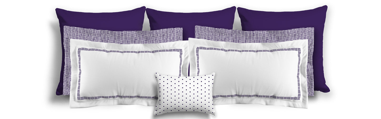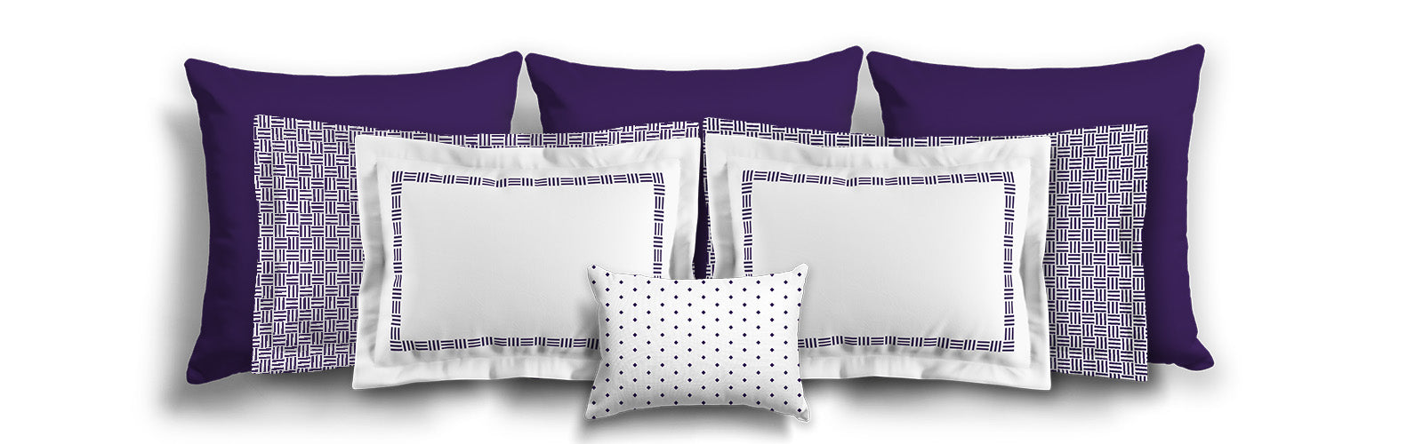 White Microfiber Pillow Sham with Flange, Purple Single Weave Motif Print, White Reverse Side | MFSF-1143-142