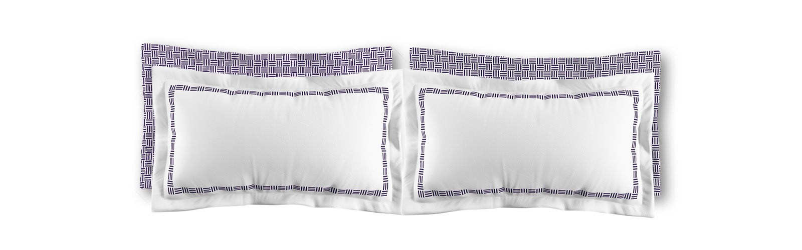 White Microfiber Pillow Sham with Flange, Purple Single Weave Motif Print, Classic Border, White Reverse Side | MFSF-1143-141