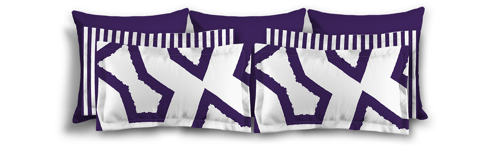 White Microfiber Sham with Flange, Bold Purple Graphic on Front, White Reverse Side | MFSF-1143-391