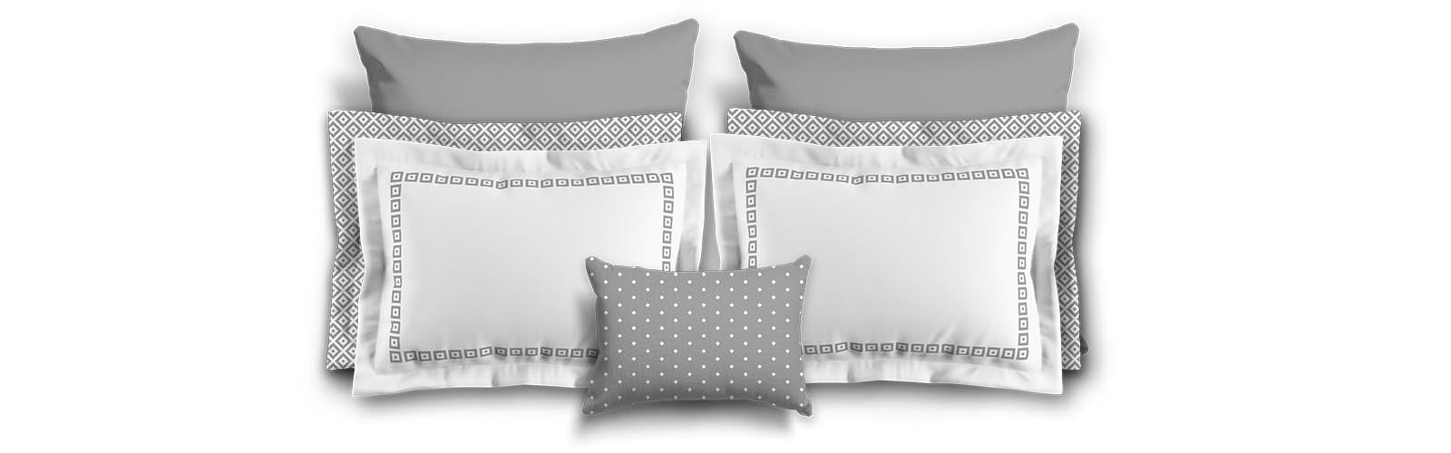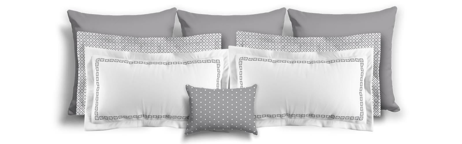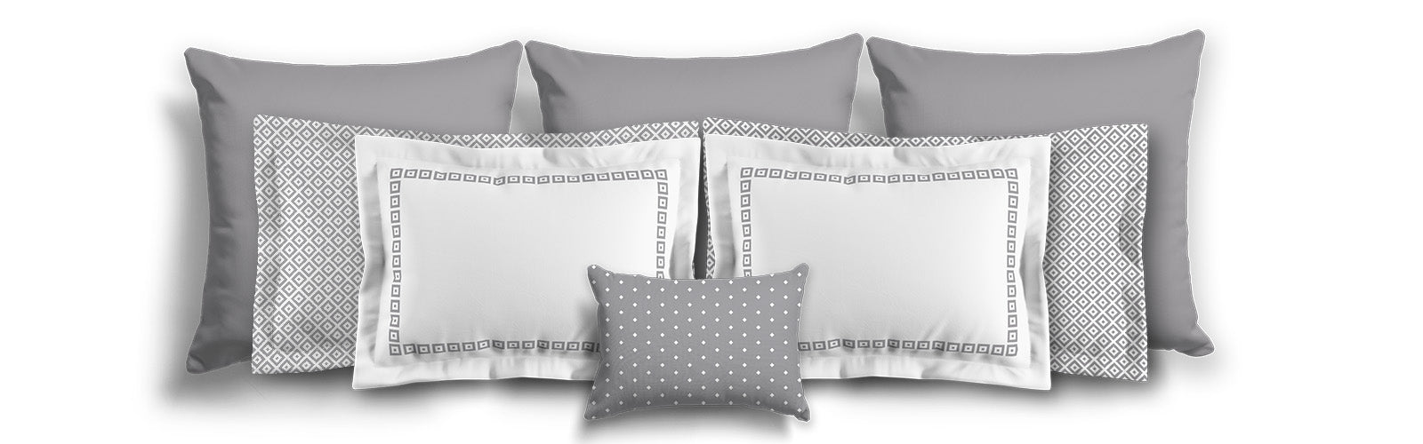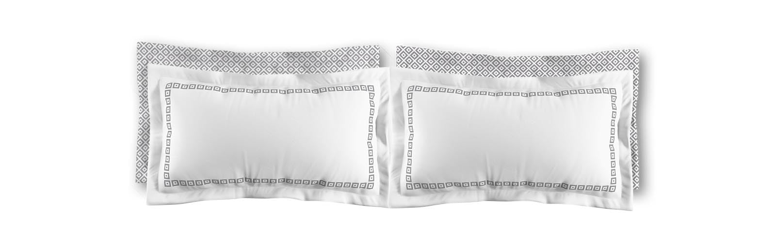 White Microfiber Pillow Sham with Flange, Grey Repeating Square Motif Print, White Reverse Side | MFSF-1203-122