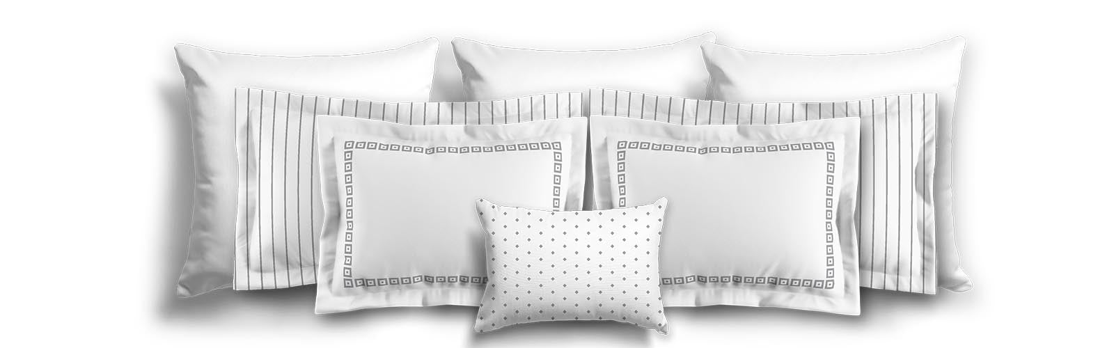 White Microfiber Sham with Flange, Grey Bars on Front, White Reverse Side | MFSF-1203-051