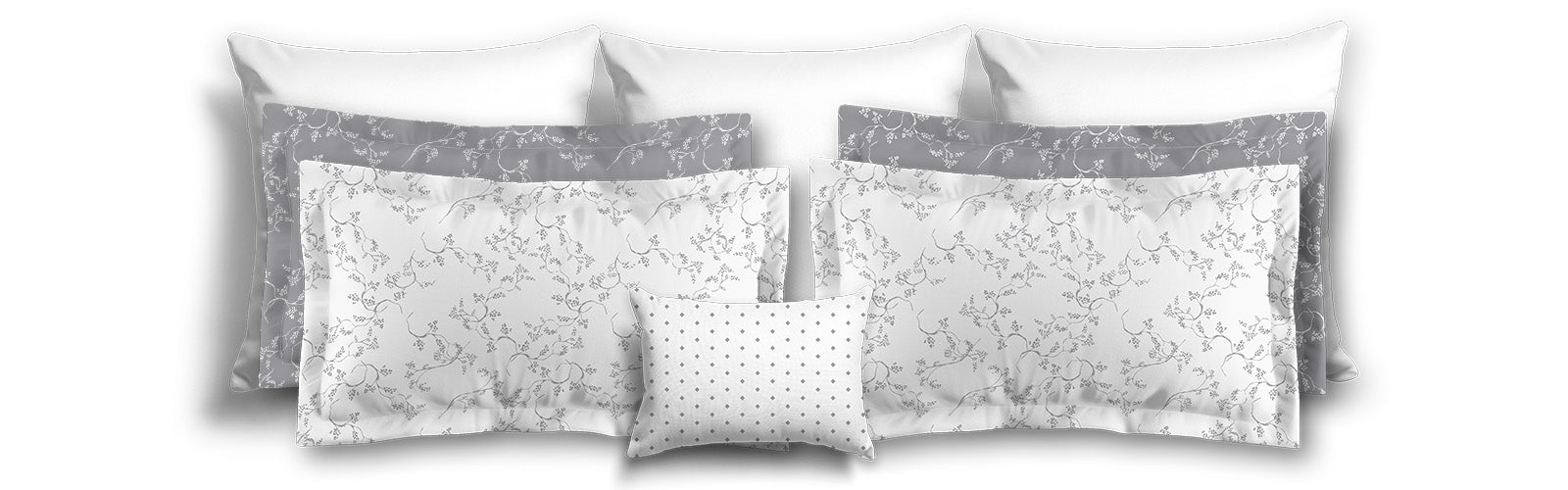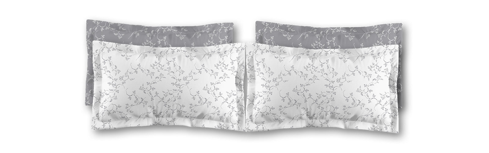 Grey Microfiber Pillow Sham with Flange, White Hand-painted Vine Print, White Reverse Side | MFSF-1203-182