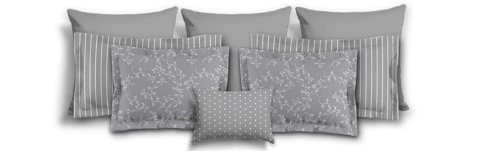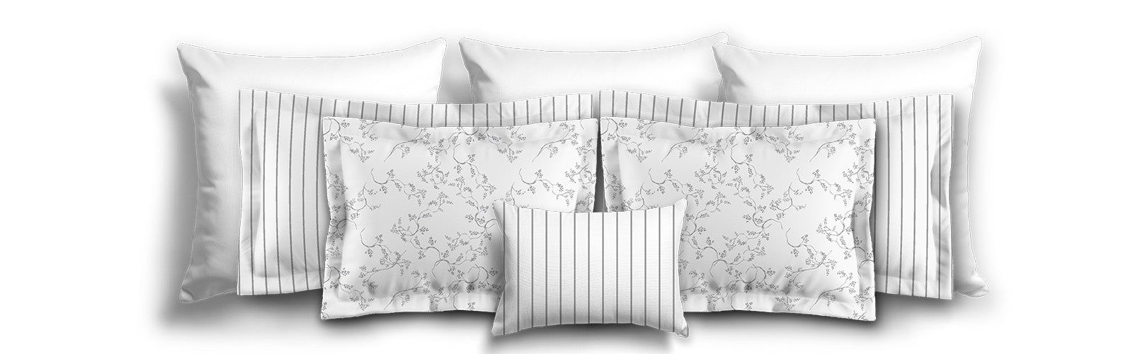 White Microfiber Sham with Flange, Grey Bars on Front, White Reverse Side | MFSF-1203-051