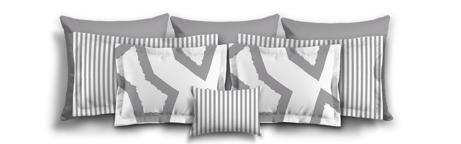 White Microfiber Sham with Flange, Bold Grey Graphic on Front, White Reverse Side | MFSF-1203-391