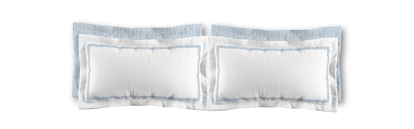 White Microfiber Pillow Sham with Flange, Blue Single Weave Motif Print, Classic Border, White Reverse Side | MFSF-1231-141