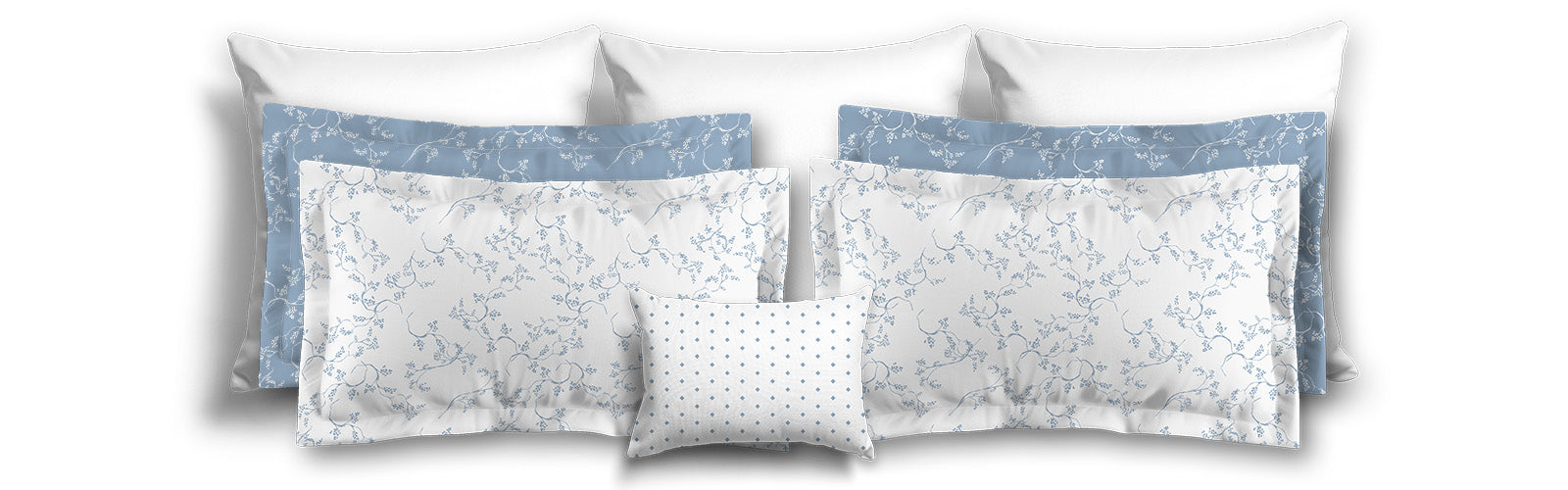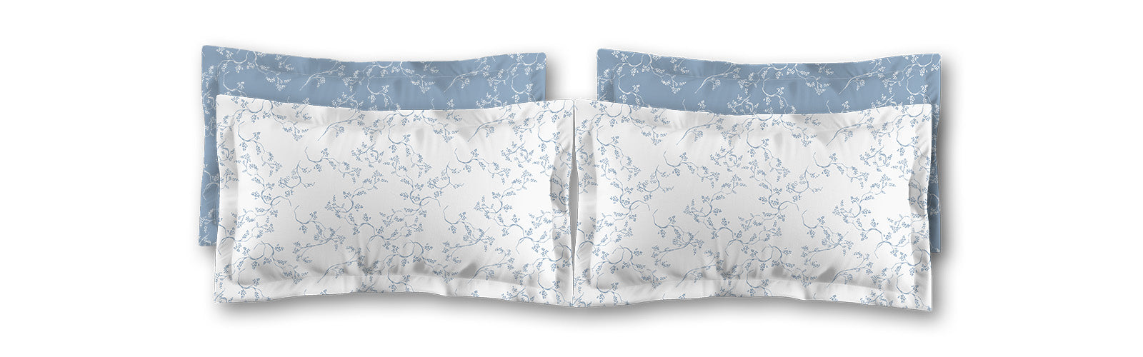 Blue Microfiber Pillow Sham with Flange, White Hand-painted Vine Print, White Reverse Side | MFSF-1231-182