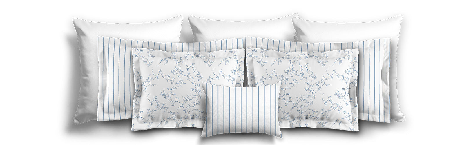 Use the arrows below to view a slideshow of this collection, showcasing beautifully coordinated king-size and standard pillow shams paired with complementing lumbar pillows.