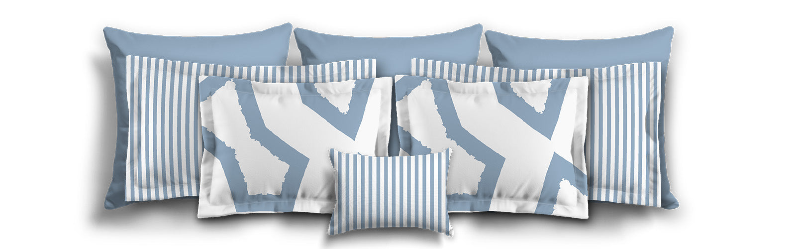 Blue Microfiber Sham with Flange, White Stripes on Front, White Reverse Side | MFSF-1231-152