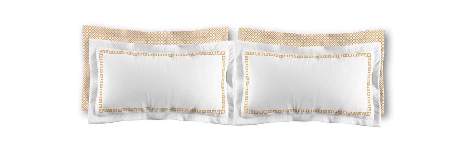 White Microfiber Pillow Sham with Flange, Pale Orange Repeating Square Motif Print, Classic Border, White Reverse Side | MFSF-1232-121