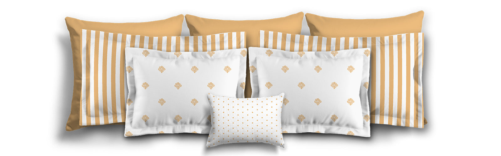 White Microfiber Sham with Flange, Pale Orange Stripes on Front, White Reverse Side | MFSF-1232-151