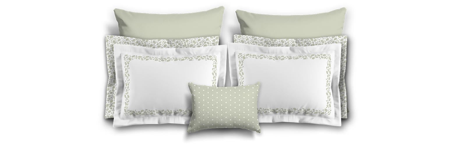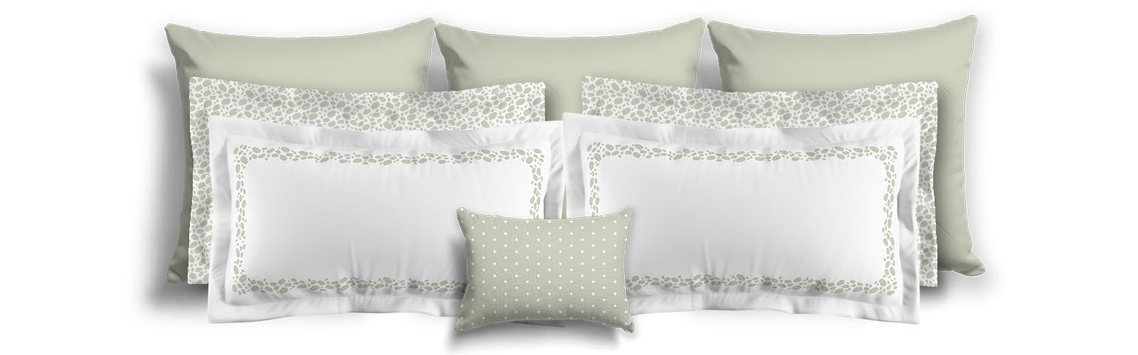 White Microfiber Pillow Sham with Flange, Pale Green Hand-painted Dab Motif Print, White Reverse Side | MFSF-1241-092