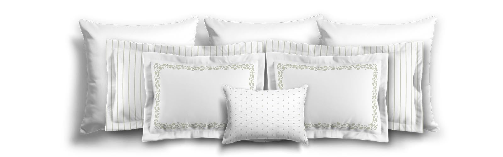 White Microfiber Sham with Flange, Pale Green Stripes on Front, White Reverse Side | MFSF-1241-151