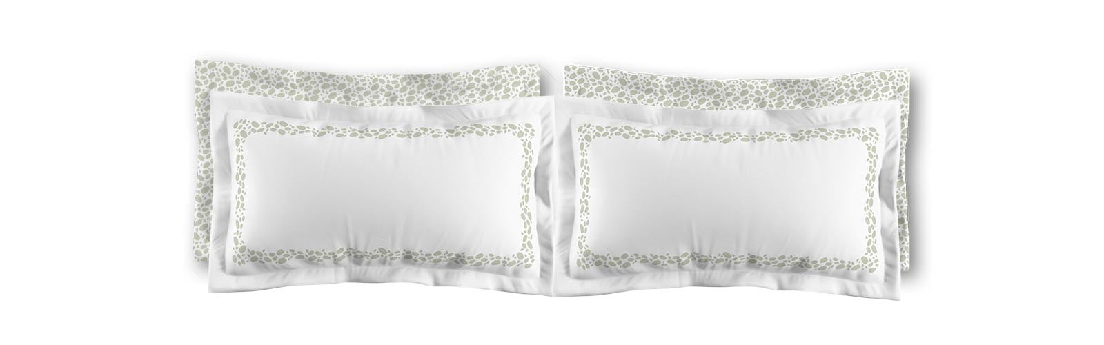 White Microfiber Pillow Sham with Flange, Pale Green Hand-painted Dab Motif Print, Classic Border, White Reverse Side | MFSF-1241-091