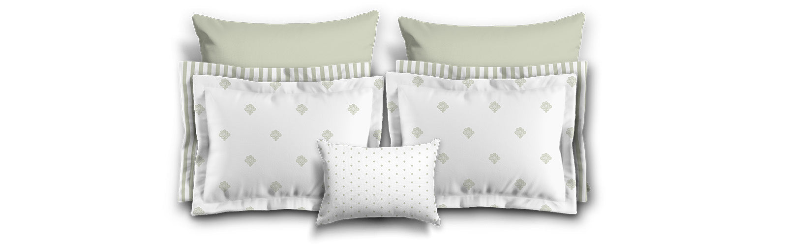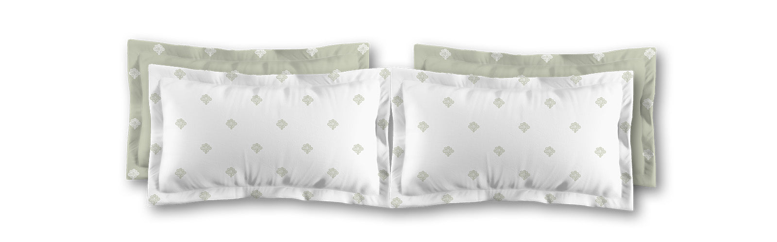 White Microfiber Pillow Sham with Flange, Pale Green Hand-painted Swizzle Motif Print, White Reverse Side | MFSF-1241-171