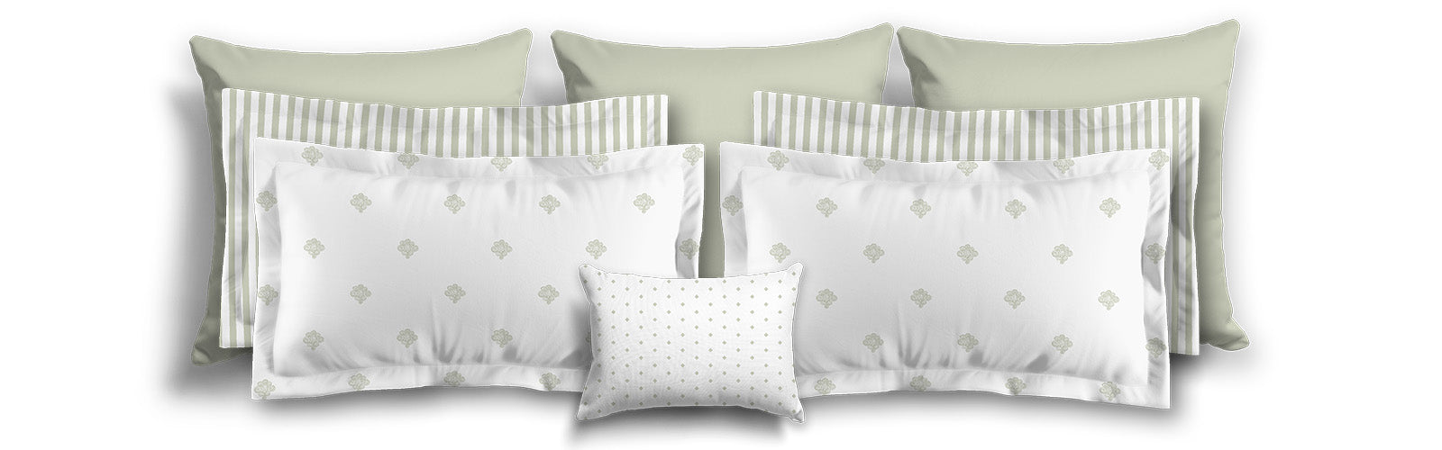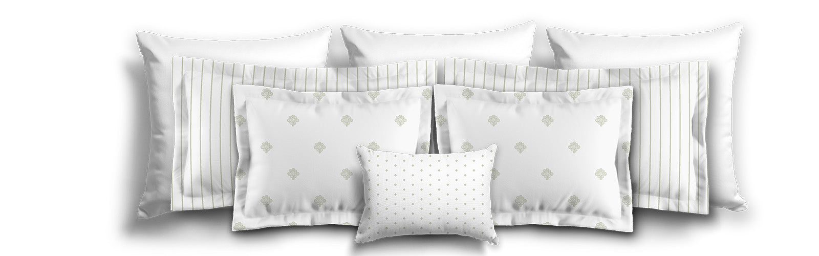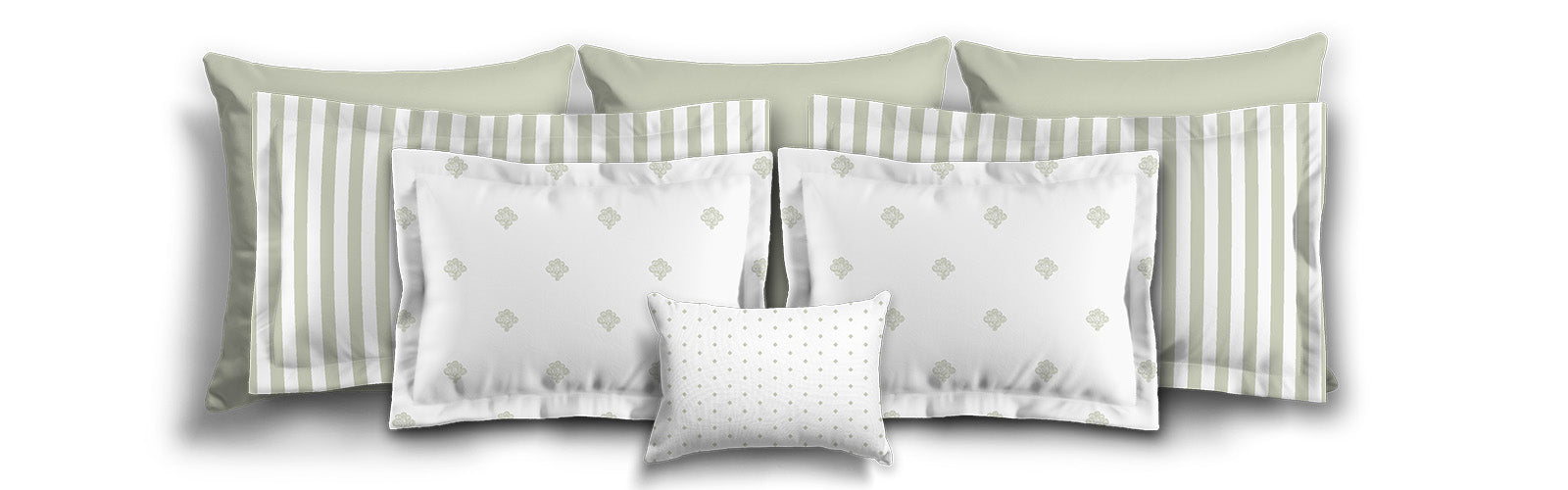 White Microfiber Sham with Flange, Pale Green Stripes on Front, White Reverse Side | MFSF-1241-151