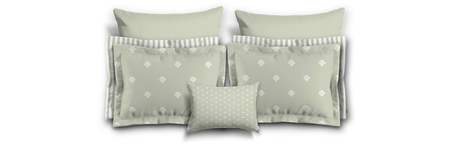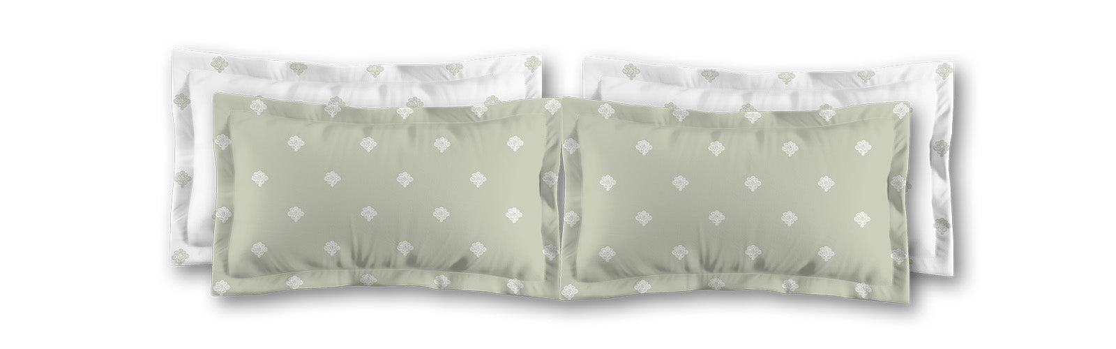 Pale Green Microfiber Pillow Sham with Flange, White Hand-painted Swizzle Motif Print, White Reverse Side | MFSF-1241-172