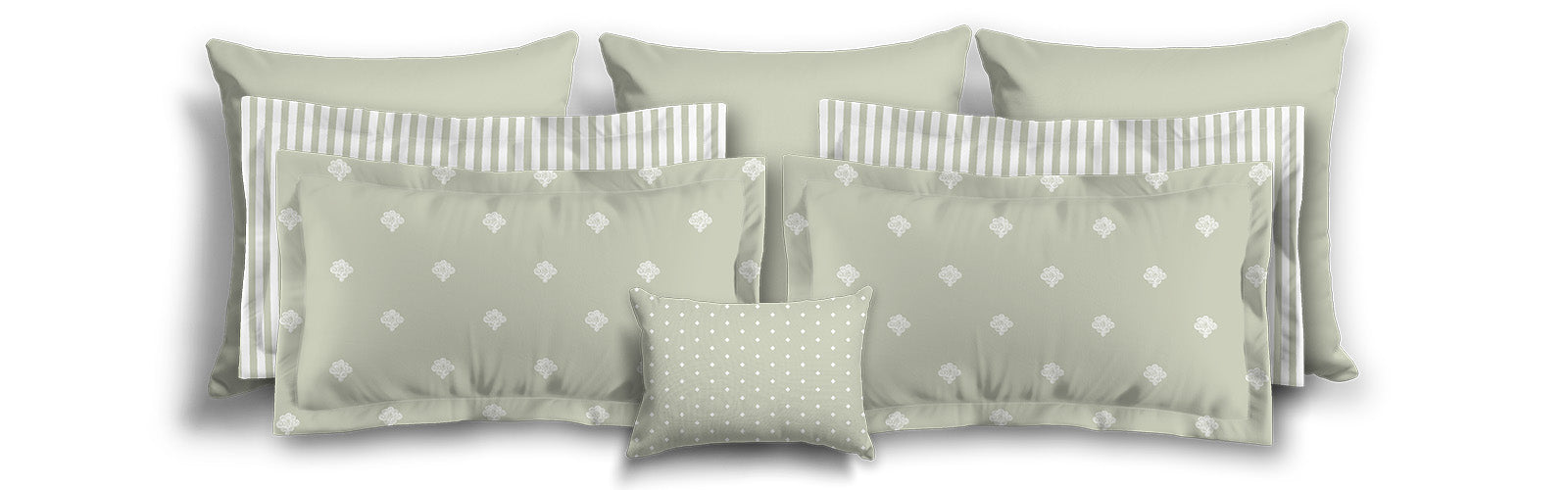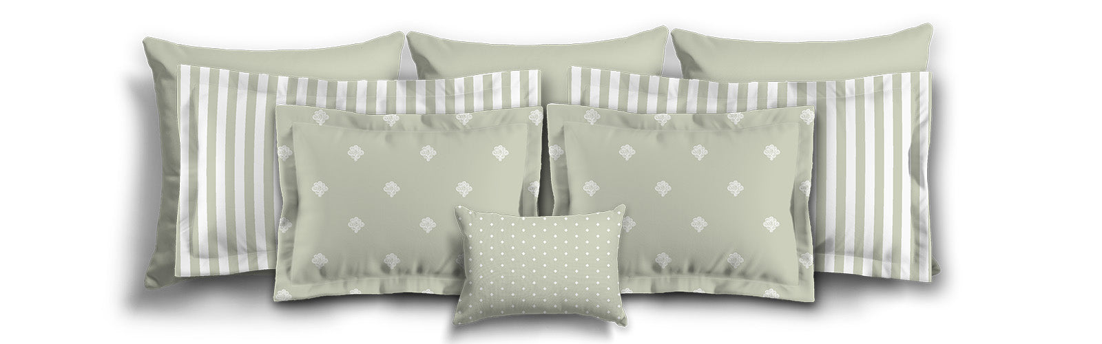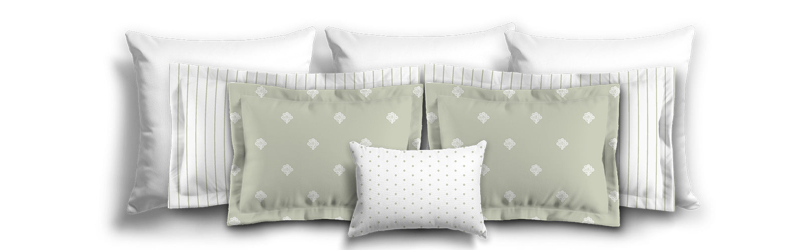 White Microfiber Sham with Flange, Pale Green Stripes on Front, White Reverse Side | MFSF-1241-151