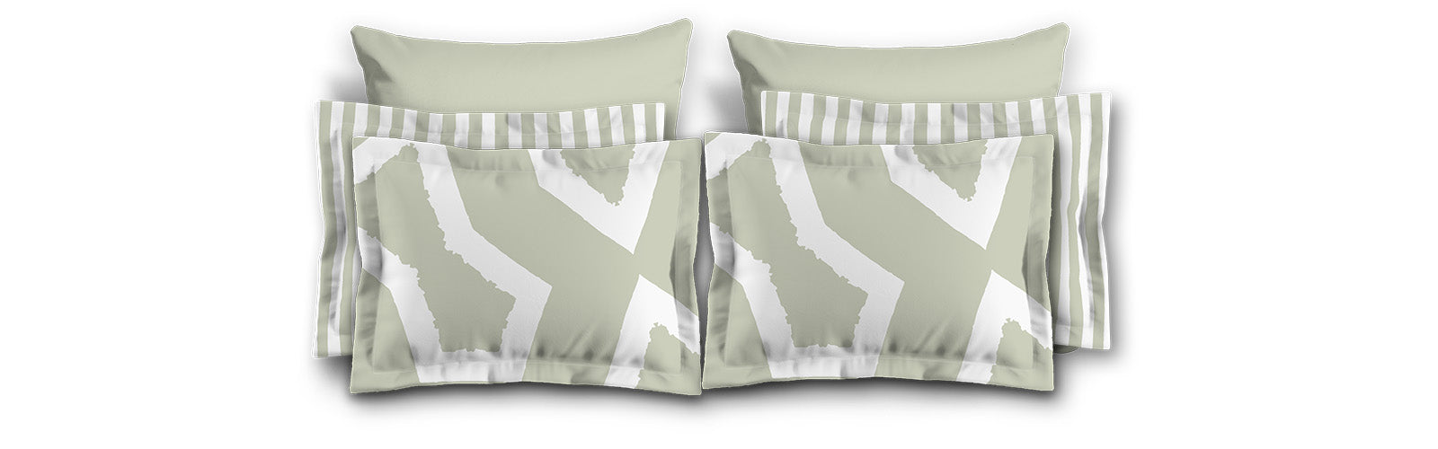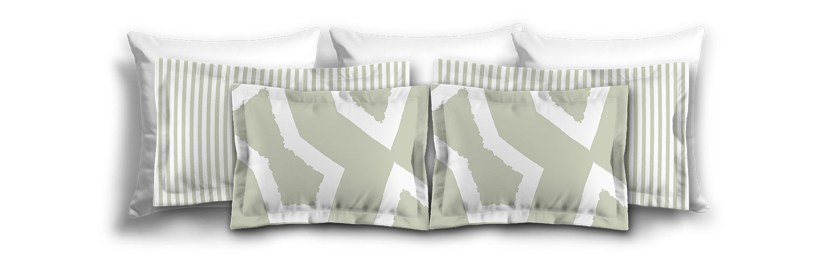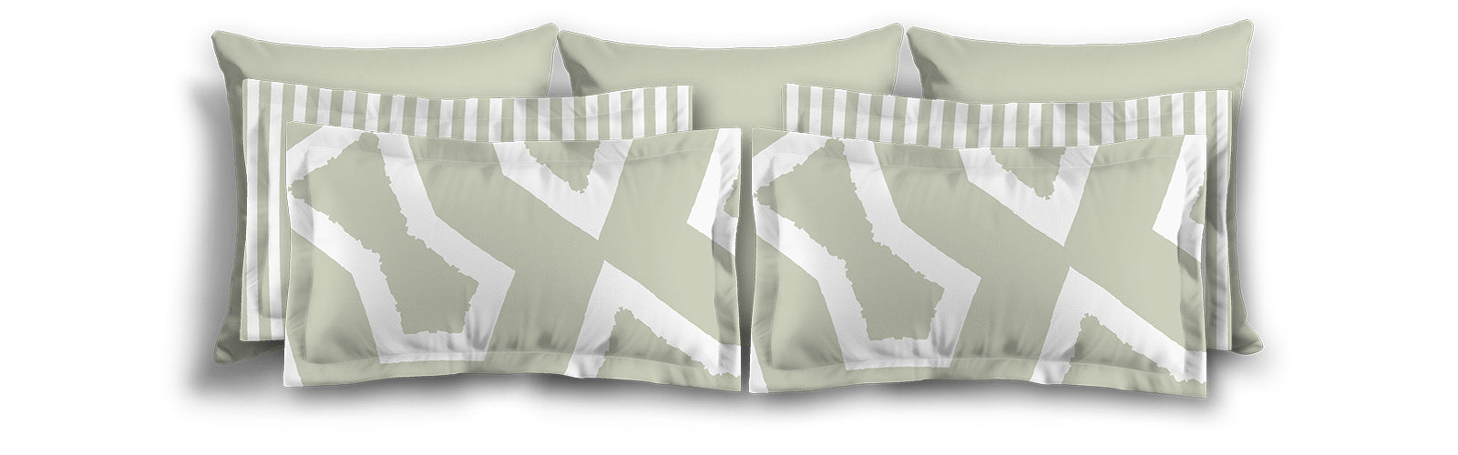 White Microfiber Sham with Flange, Pale Green Bars on Front, White Reverse Side | MFSF-1241-051