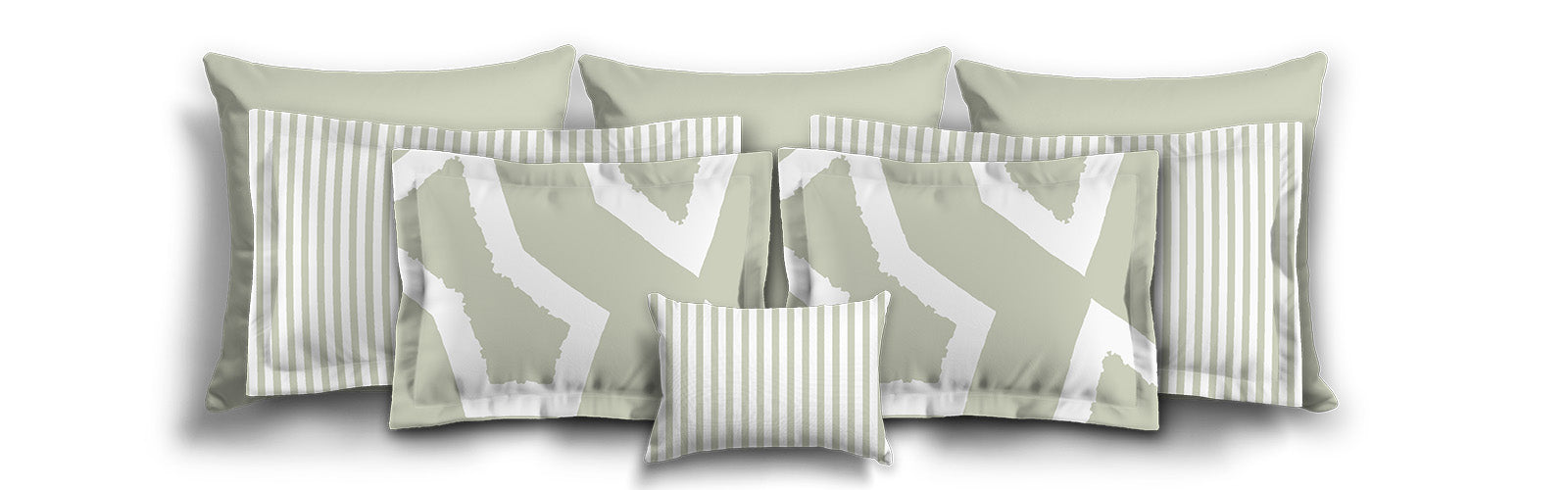 Pale Green Microfiber Sham with Flange, White Stripes on Front, White Reverse Side | MFSF-1241-152