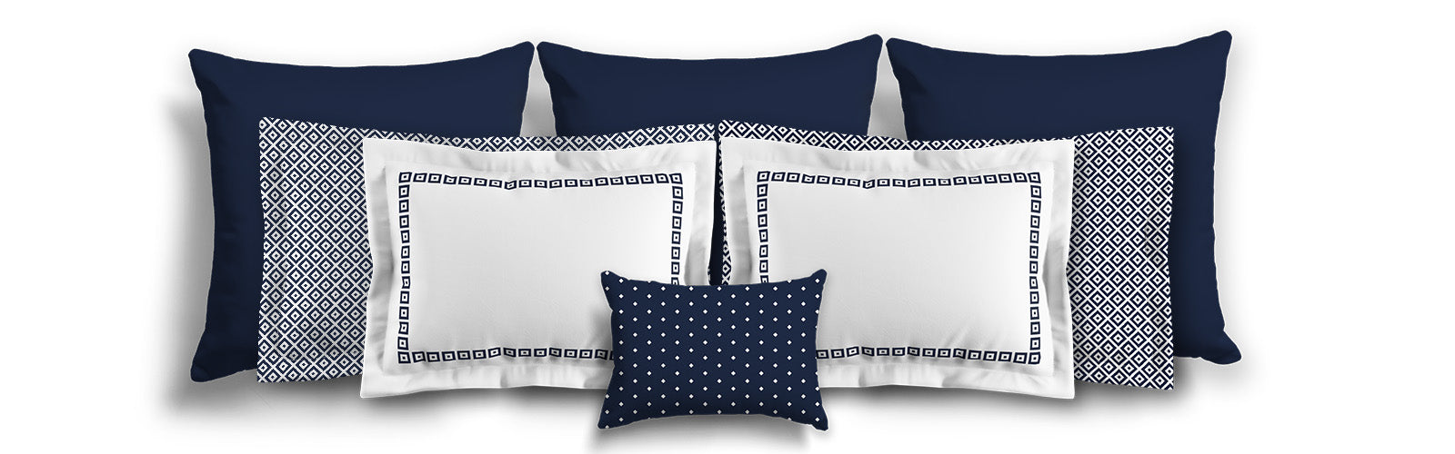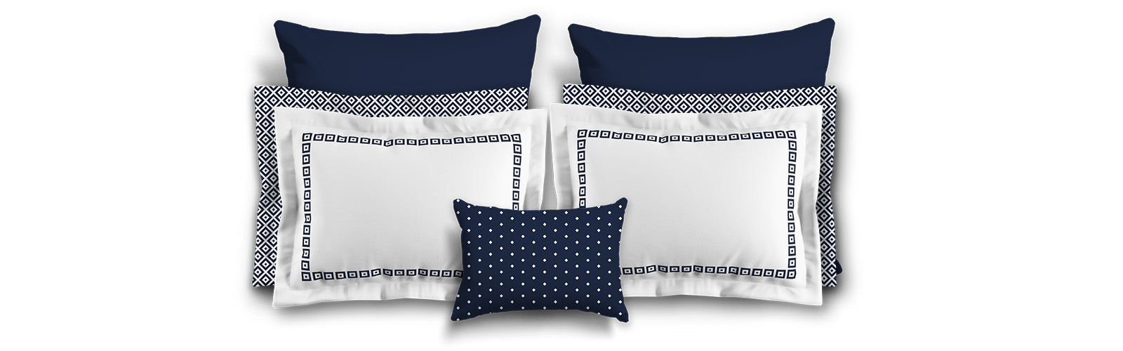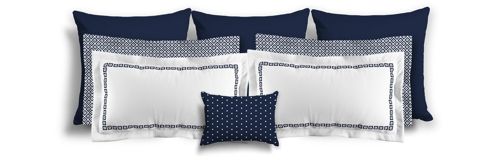 White Microfiber Pillow Sham with Flange, Navy Blue Repeating Square Motif Print, White Reverse Side | MFSF-1271-122