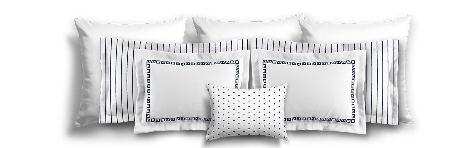 White Microfiber Sham with Flange, Navy Blue Stripes on Front, White Reverse Side | MFSF-1271-151