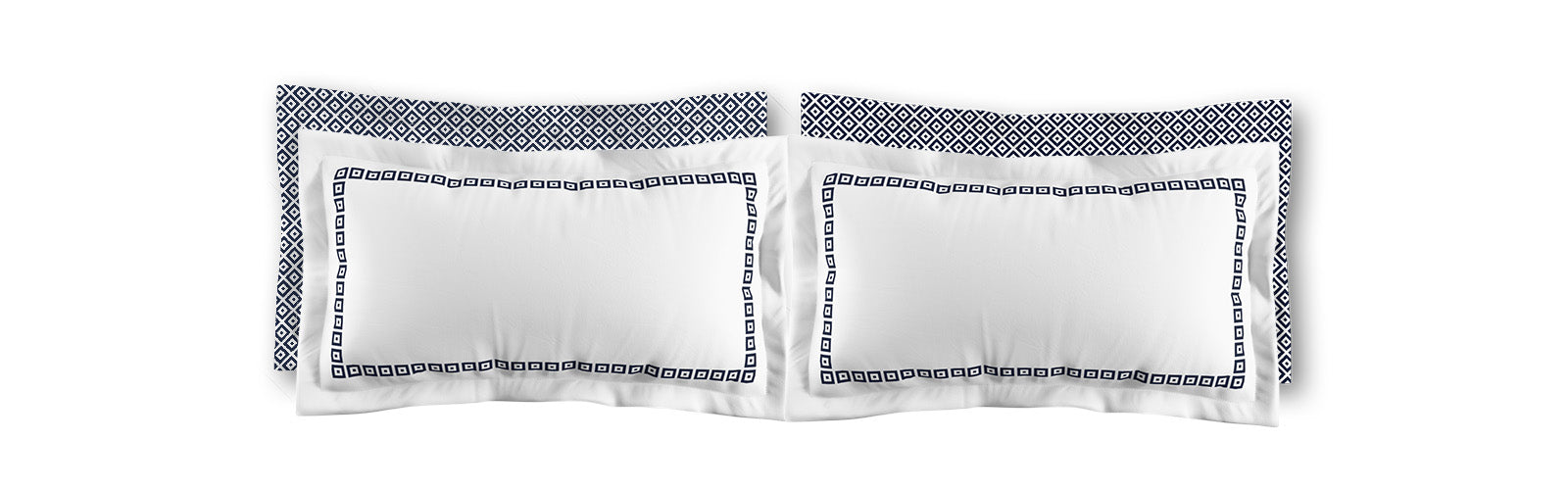 White Microfiber Pillow Sham with Flange, Navy Blue Repeating Square Motif Print, Classic Border, White Reverse Side | MFSF-1271-121