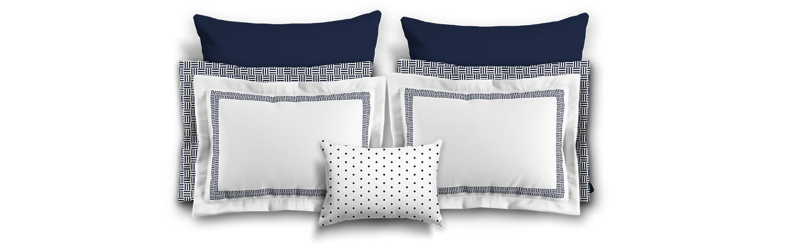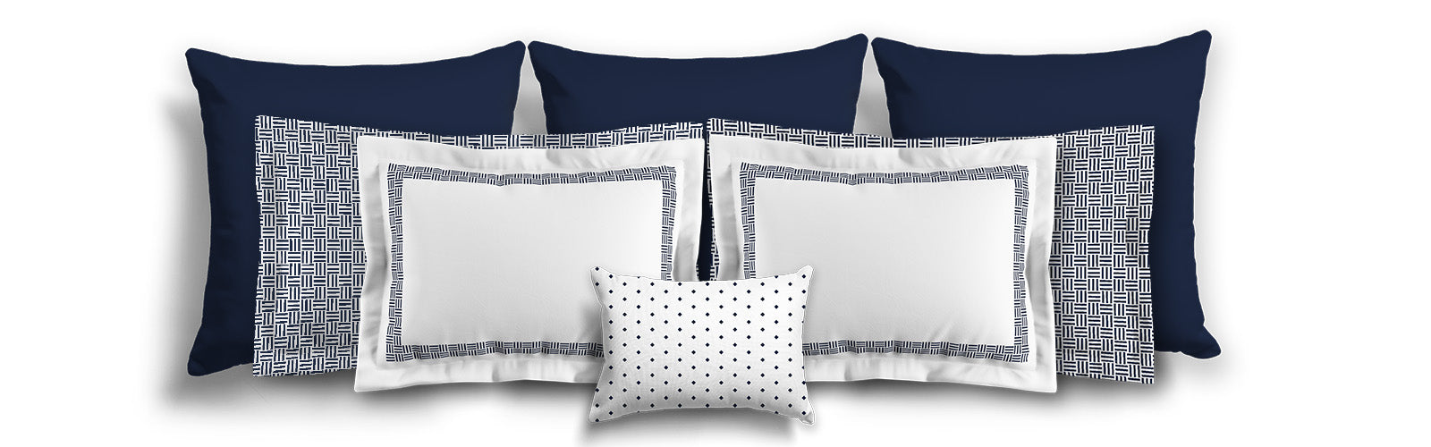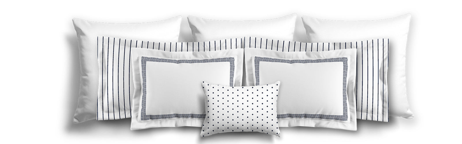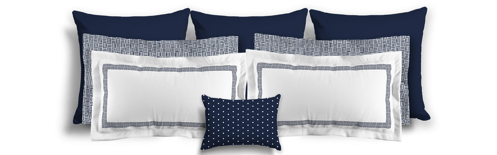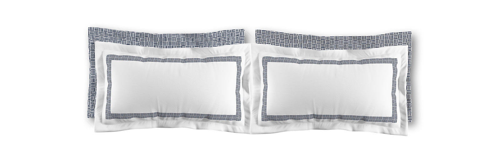 White Microfiber Pillow Sham with Flange, Navy Blue Double Weave Motif Print, White Reverse Side | MFSF-1271-144