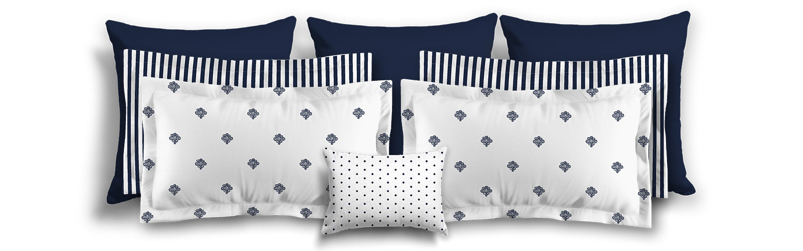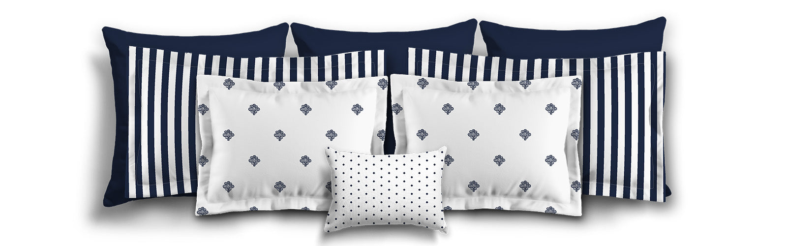 White Microfiber Sham with Flange, Navy Blue Stripes on Front, White Reverse Side | MFSF-1271-151